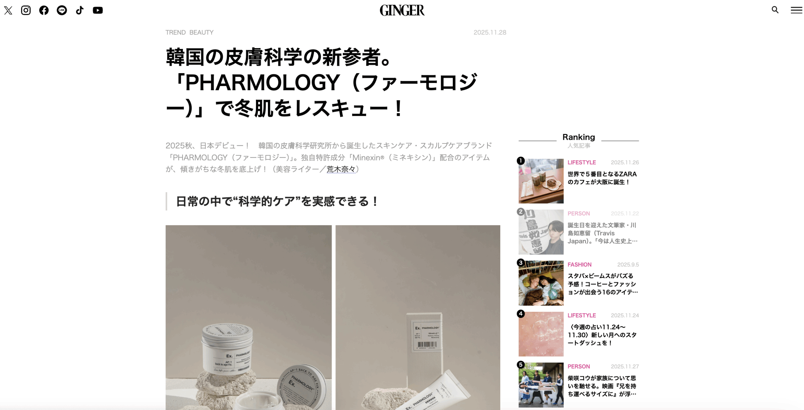 【掲載情報】PHARMOLOGY製品が「GINGER」に掲載されました。