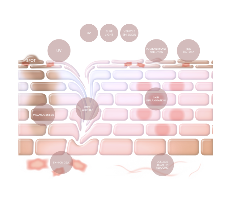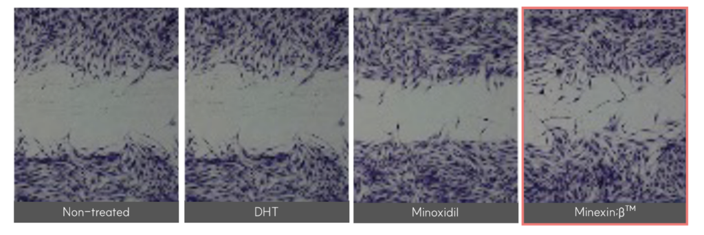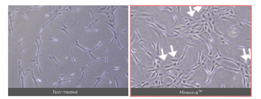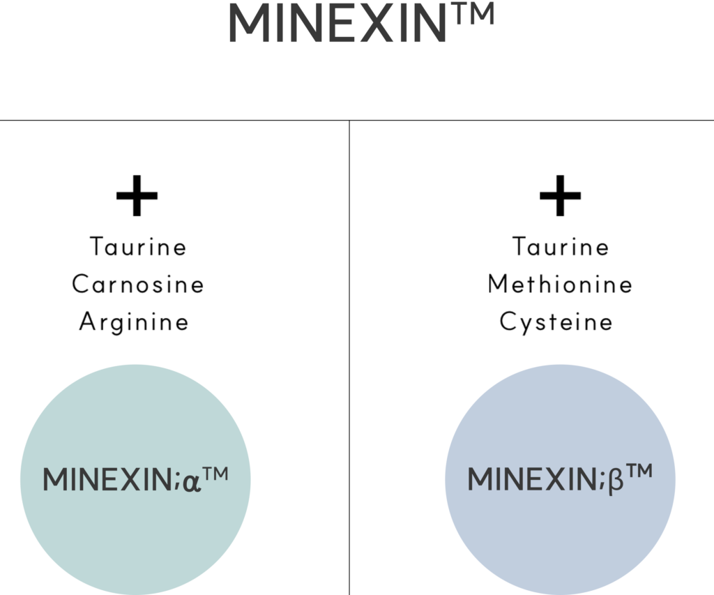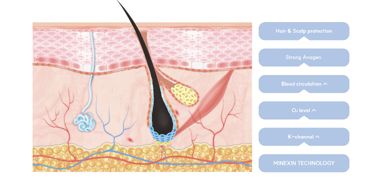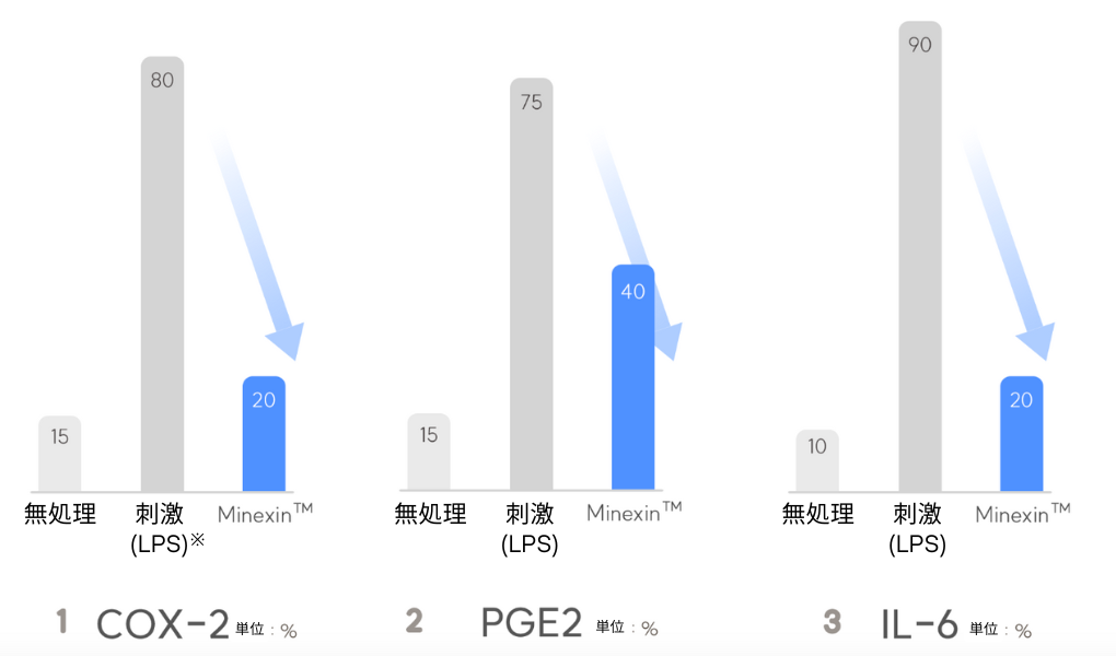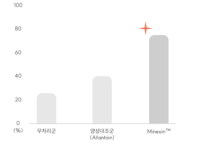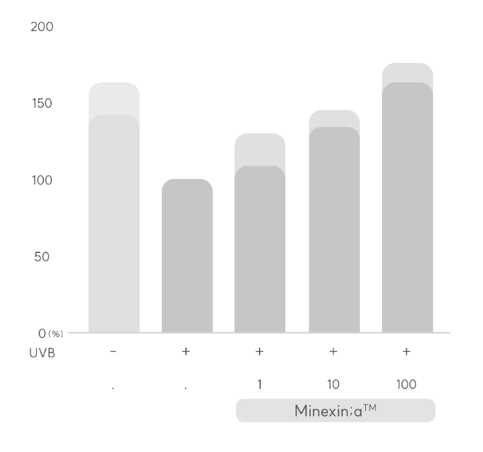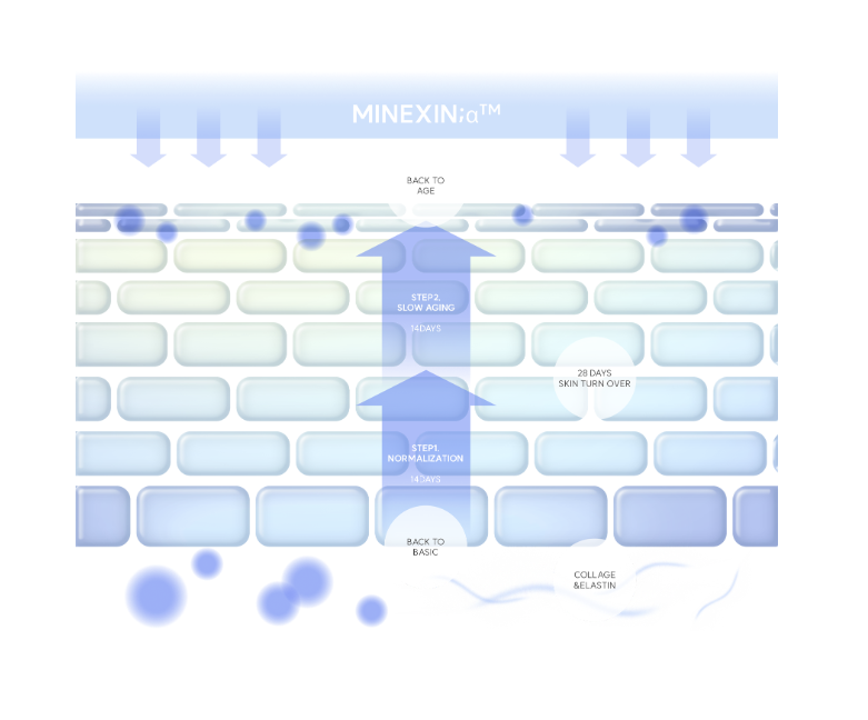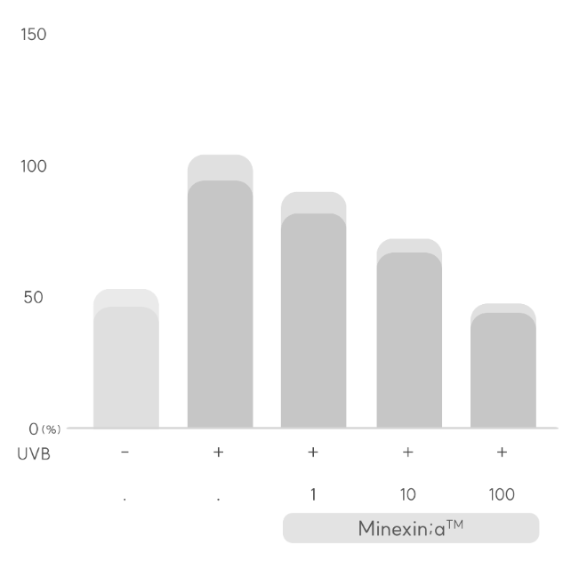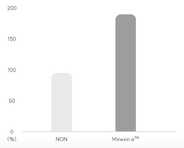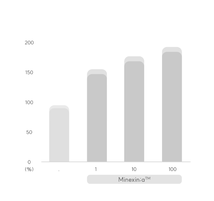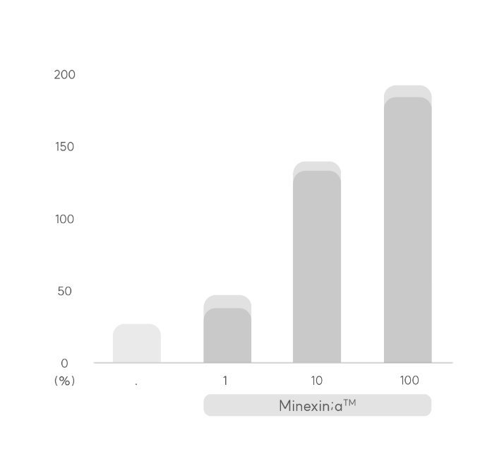 MINEXIN Minexin™ technology What is Minexin™ ? Special Ingredients Patents Minexin™ technology 最先端のバイオテクノロジー技術を利用し、ミネラルの生命力とアミノ酸の組み合わせで効能を最大化した「ファーモロジー独自の技術」であり、国際化粧品成分辞典に登録された新開発原料です。 What is Minexin™ ? ミネキシンは「ミネラル肌ワクチン」という意味で、ミネラルが持つ無限の肌改善効果を表現した名前です。自社の研究力を通じて開発された独自開発の新原料として、国際化粧品成分辞典(ICID)に登録されています。Bacillus / Biotite / Bentonite Ferment Extract Filtrate Special Ingredients - 特別な原料 - ファーモロジーは過酷な環境でも優れた自生力を持つ特別な素材を研究している中で、その力の源が自然界に存在する「天然ミネラル」にあることを発見しました。私たちが持つ最先端のバイオテクノロジー技術を応用し、天然ミネラルの発酵に最適な特許菌株を発見して、ファーモロジー独自の原料「ミネキシン(Minexin™)」を完成させました。ミネキシン(Minexin™)は、10種類以上のバイオミネラルと50種類以上の有用代謝物で構成され、血行改善および炎症緩和に優れた独自開発の素材です。水よりも小さな粒子を持つミネキシンの高い皮膚浸透率により、驚くべき効果が期待できます。 Minexin™の免疫細胞における炎症関連遺伝子調整効果 Gene regulation effect ミネキシンは、刺激を受けた免疫細胞において、炎症に関連する遺伝子(COX-2、PGE2、IL-6)を調節し、正常化する効果があります。 ※LPS(リポ多糖)は、細菌の菌体成分で、免疫細胞を刺激して炎症反応を引き起こす物質 Minexin™の免疫細胞における炎症関連遺伝子調整効果 Wound healing 皮膚表皮角化細胞(ケラチノサイト)にスクラッチを加えて傷を誘発する実験を通じて、ミネキシンの傷の治癒および細胞再生効果が優れていることが確認された結果です。 ※当実験は、人間由来の皮膚表皮細胞を用いて行われました。 ミネキシンは、陽性対照群(アラントイン)と比較して、傷の治癒および真皮細胞再生効果が20%以上優れていることが確認されました。 ※陽性対照群(Allantoin)とは肌の再生と傷の治癒を助ける成分 Minexin;α™ – Epidermis/Dermis co-management “脱水した細胞に水分を供給して、若く健康な肌を取り戻す。”様々なストレスや外部環境要因により、細胞の脱水現象が発生します。脱水した細胞は、皮膚バリアを徐々に弱め、問題のある肌や老化の原因になります。ミネキシンアルファは水分を供給して細胞の脱水を防ぎ、皮膚バリアを健康に保護します。真皮の構造物であるコラーゲンをしっかりと維持し、老化を遅延させます。 細胞脱水 > EN-1/AP-1の過剰発現 > コラーゲン分解皮膚バリアの弱化 > 皮膚問題の発生 / 老化の加速 Minexin;α™ > 細胞脱水予防 > EN-1/AP-1抑制コラーゲン生成促進 > 皮膚バリア強化 > 皮膚問題改善 / 老化予防 Minexin;α™の皮膚保湿促進効果 Minexin;α™は、皮膚表皮細胞で保湿因子であるヒアルロン酸の生成を増加させ、保湿の向上に役立ちます。 Minexin;α™の皮膚バリア保護効果 Minexin;α™は、皮膚表皮細胞でバリア機能に重要な遺伝子であるプロフィラグリンの発現を増加させ、皮膚バリアを健康に保つのに役立ちます。 Minexin;α™の肌老化抑制効果 プロコラーゲン発現促進 Minexin;α™は、皮膚表皮細胞で保湿因子であるヒアルロン酸の生成を増加させ、保湿の向上に役立ちます。 MMP-1発現抑制 Minexin;α™は、皮膚表皮細胞でバリア機能に重要な遺伝子であるプロフィラグリンの発現を増加させ、皮膚バリアを健康に保つのに役立ちます。 Minexin;α™は、皮膚真皮細胞でコラーゲン生成を促進するプロコラーゲン遺伝子の発現を高め、コラーゲンを分解するMMP-1遺伝子の発現を抑制することで、肌の老化を遅らせるのに役立ちます。 Minexin;α™の皮膚幹細胞成長効果 Minexin;α™は、皮膚幹細胞の自己増殖と成長を促進し、老化の遅延に役立ちます。 Minexin;β™ - Hair cycle Management 弱った頭皮では毛髪の「成長期」が短くなり、髪が細く弱くなります。その一方で「休止期」が長くなり、脱毛の原因になります。ヘアサイクルを正常に戻すことは、頭皮の問題や脱毛を防ぐためにとても大切です。ファーモロジーは、毛髪の「成長期(Anagen)」を活性化させることに力を入れています。ミネキシンベータは、頭皮細胞のKチャネルを開き、酸素供給と血流を良くします。これにより、毛髪の「成長期(Anagen)」を活性化し、頭皮と髪を健康に保ちます。 毛根細胞の脱水 > Kチャネルの問題発生 > 酸素供給の遮断 >頭皮の血行不良 > 成長期毛髪サイクルの低下 > 頭皮の脱毛問題発生 Minexin;β™ > 毛根細胞の脱水予防 > Kチャネルの開放 > 酸素供給の円滑化 >頭皮の血行改善 > 成長期毛髪サイクルの強化 > 頭皮の脱毛問題改善 Minexin;β™の毛根細胞増殖効果 Minexin;β™は、頭皮の毛根細胞で対照群であるミノキシジルより34%以上多く増殖させ、毛髪細胞の保護に役立ちます。※この実験は、人間由来の頭皮毛乳頭細胞を